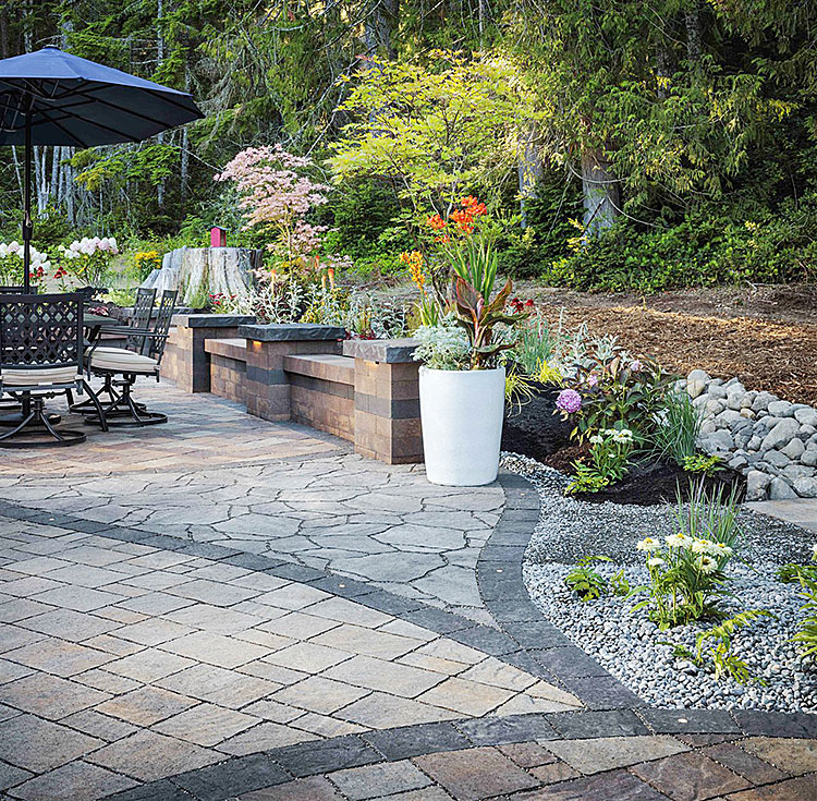 With modular options from Belgard, a mix of different materials with multiple textures and sizes can create limitless possibilities while keeping with a classic design aesthetic. Because they’re available in many styles, shapes, and sizes designed to work together, a variety of paver patterns can be combined seamlessly to achieve any desired overall look.